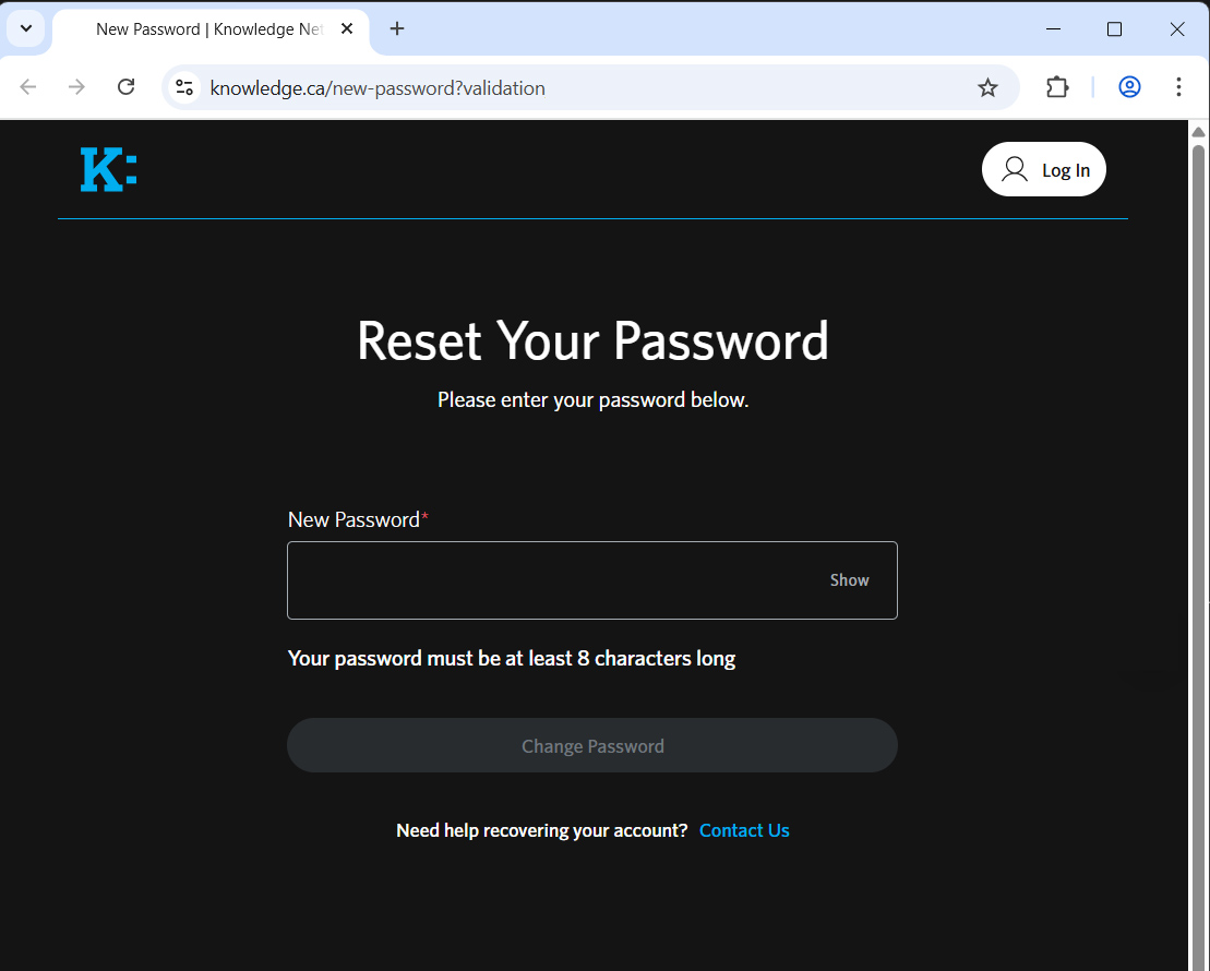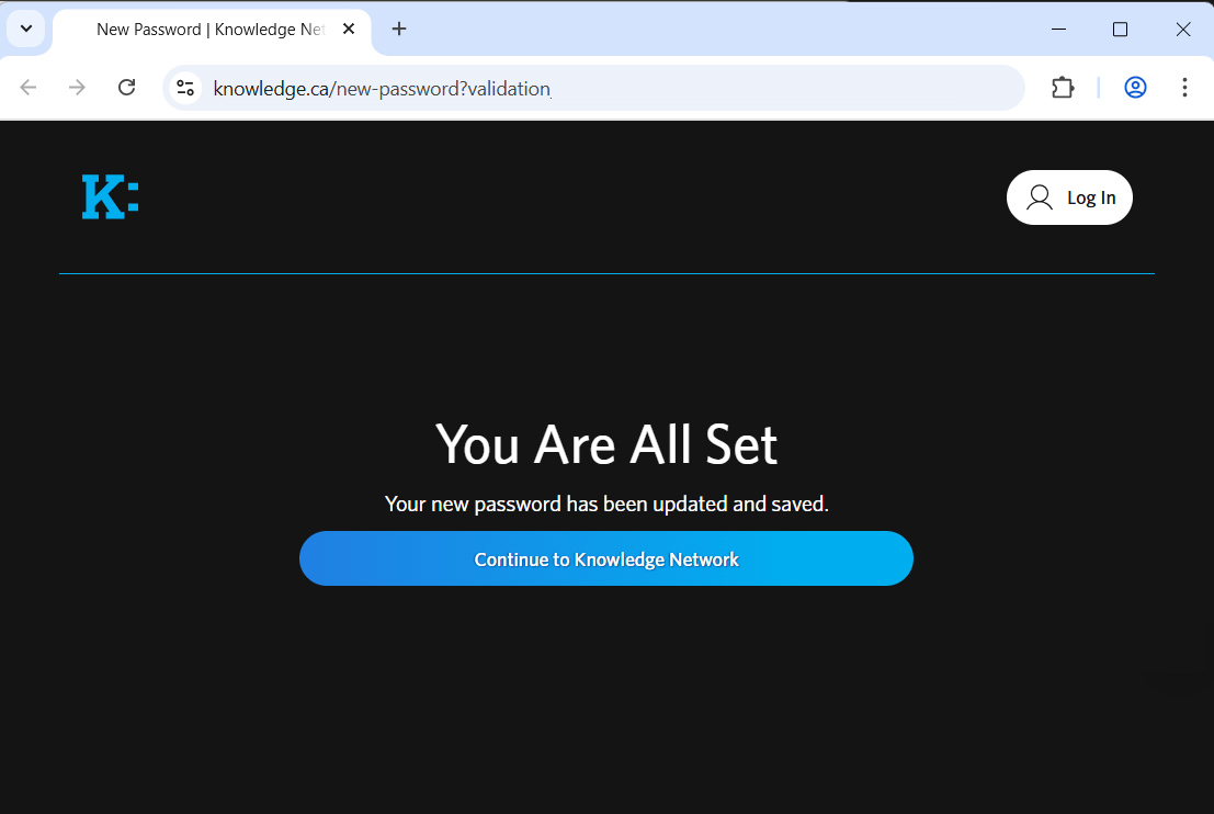 Your password has been successfully updated. You’ll be redirected to the Knowledge homepage, where you can start streaming again.